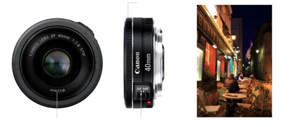A unique and indispensable addition to Canon’s series of EF lenses, the new EF 40mm f/2.8 STM offers an ultra-slim and lightweight design. Incredibly compact in size, the EF 40mm f/2.8 STM delivers high image quality from the center to the periphery thanks to its advanced lens configuration including an aspherical element, a bright 2.8 aperture, and optimized coatings that minimize ghosting and flare while providing exceptional color balance. The EF 40mm f/2.8 STM’s unobtrusive design helps the photographer avoid overwhelming their subjects with a large lens and to remain discreet in sensitive shooting situations with no compromise in performance. Its diminutive design is complemented by features such as a newly developed stepping motor for smooth and quiet continuous AF while capturing video with the Canon EOS Rebel T4i DSLR, a circular aperture (7 blades) for beautiful soft-focus backgrounds, and a short minimum focusing distance of only 0.98 ft./0.30 m.