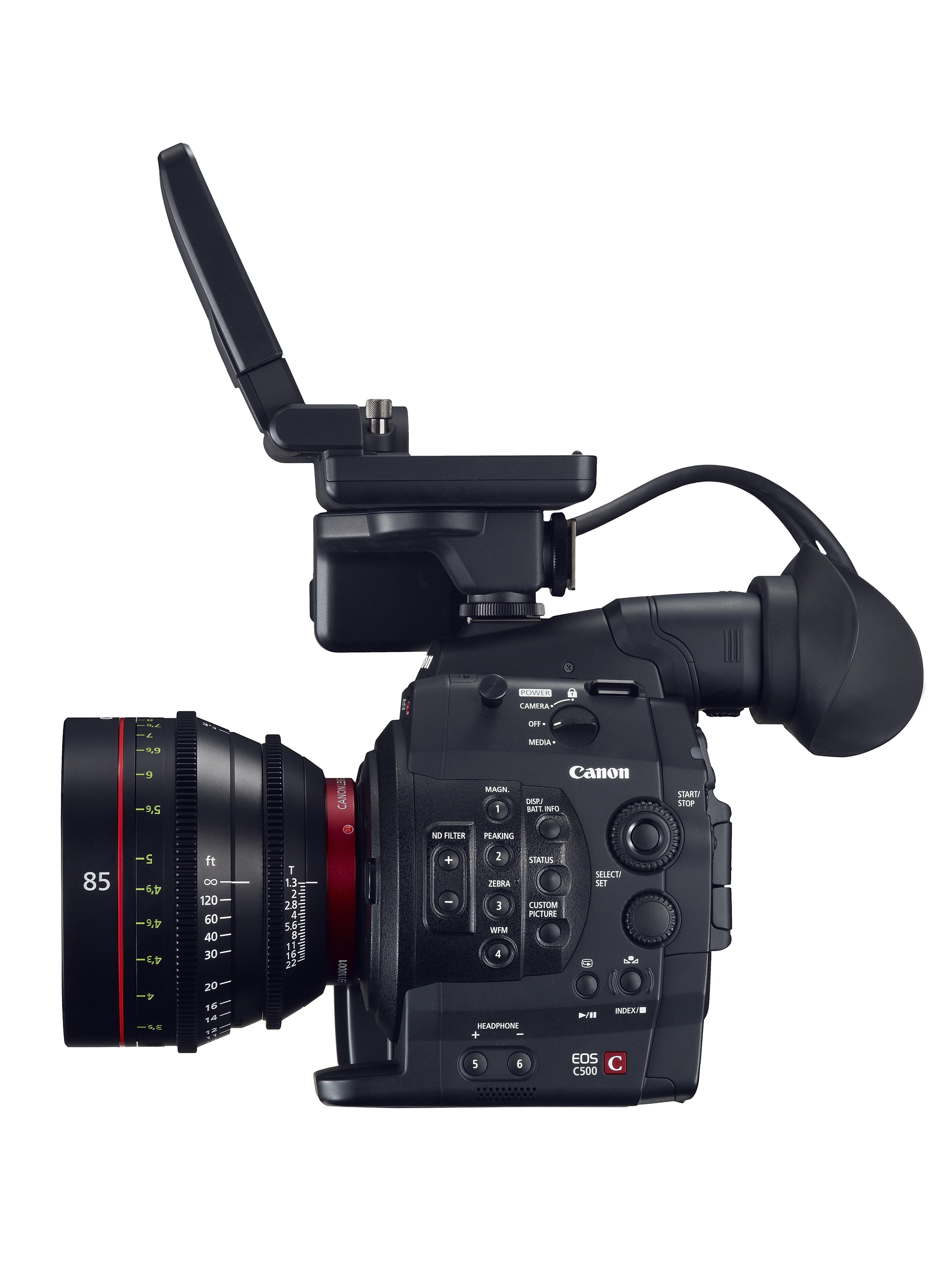 While outputting 4K or 2K video to an external recorder, the Canon EOS C500 and C500 PL digital cinema cameras simultaneously record a 50 Mbps Full HD video file in-camera to the user’s choice of one or two CF cards. The 8-bit 4:2:2 in-camera recordings can be used as a proxy for offline editing of 4K projects, and they are also suitable for various projects that do not require 4K resolution. Equipped with Canon’s exceptional Super 35mm 8.85-megapixel CMOS sensor, both C500 camera models are compatible with a wide range of interchangeable Canon lenses – the C500 is compatible with EF, EF-S and EF Cinema lenses for Canon SLR cameras, while the C500 PL is compatible with PL-mount EF Cinema lenses and other PL-mount lenses. Highly mobile and compact, the C500 digital cinema camera provides the same ergonomic features as the C300 model, with the exception of a fixed hand grip that incorporates a pair of 3G-SDI ports for 4K video output and another pair of video ports for monitoring purposes. Canon is working with several independent manufacturers of external video recorders to support smooth workflow options, and these recorders are expected to be available by the time the EOS C500 and C500 PL 4K digital cinema cameras ship to authorized dealers later this year.